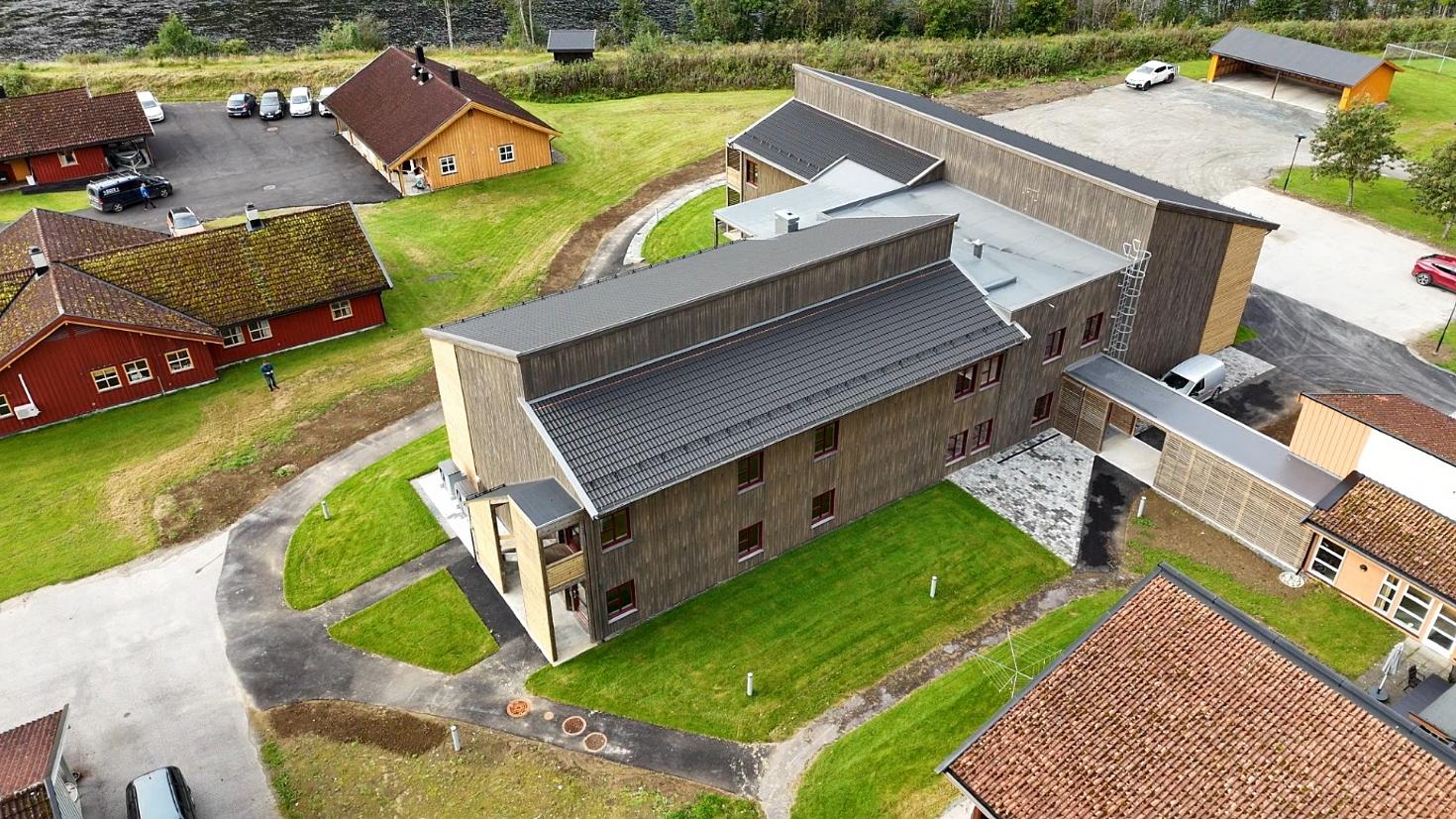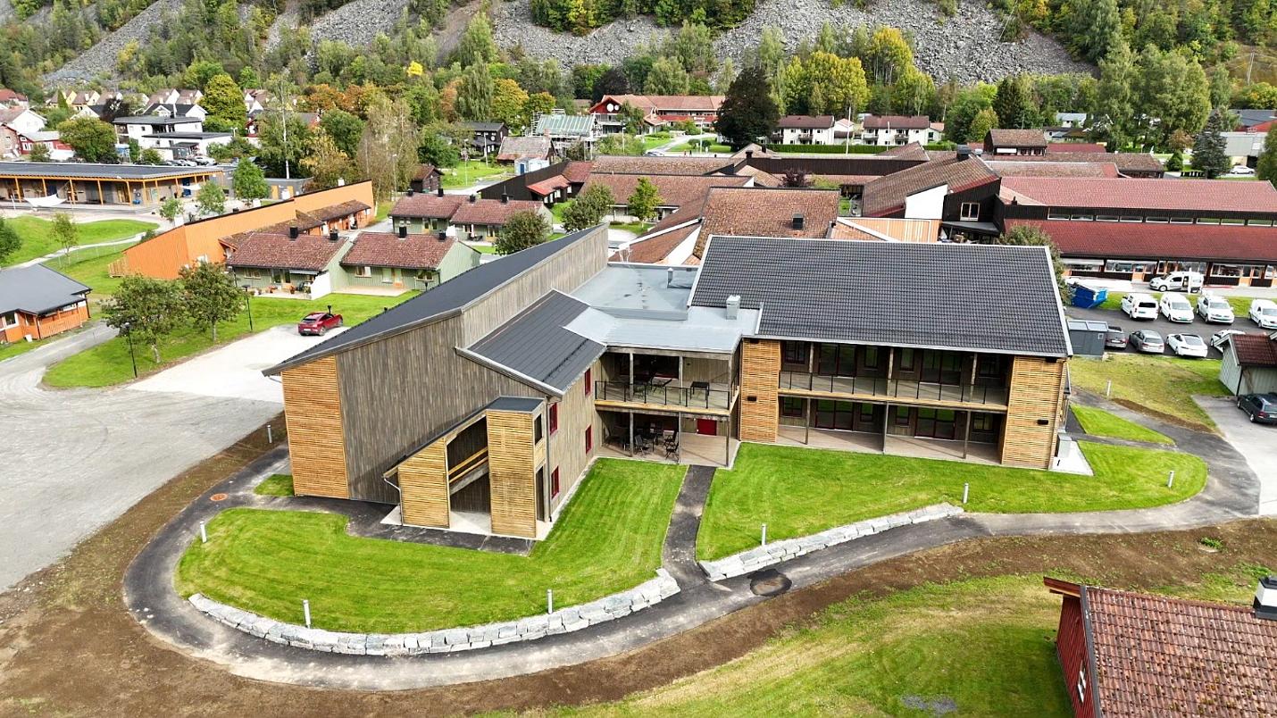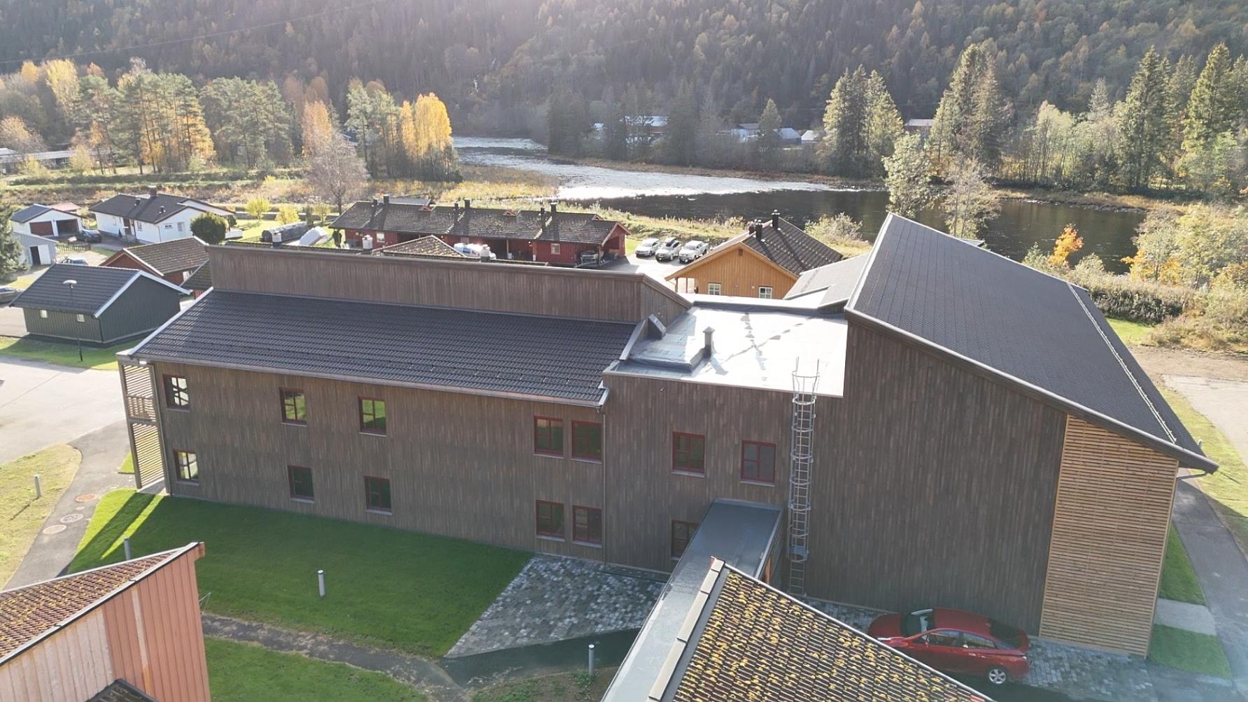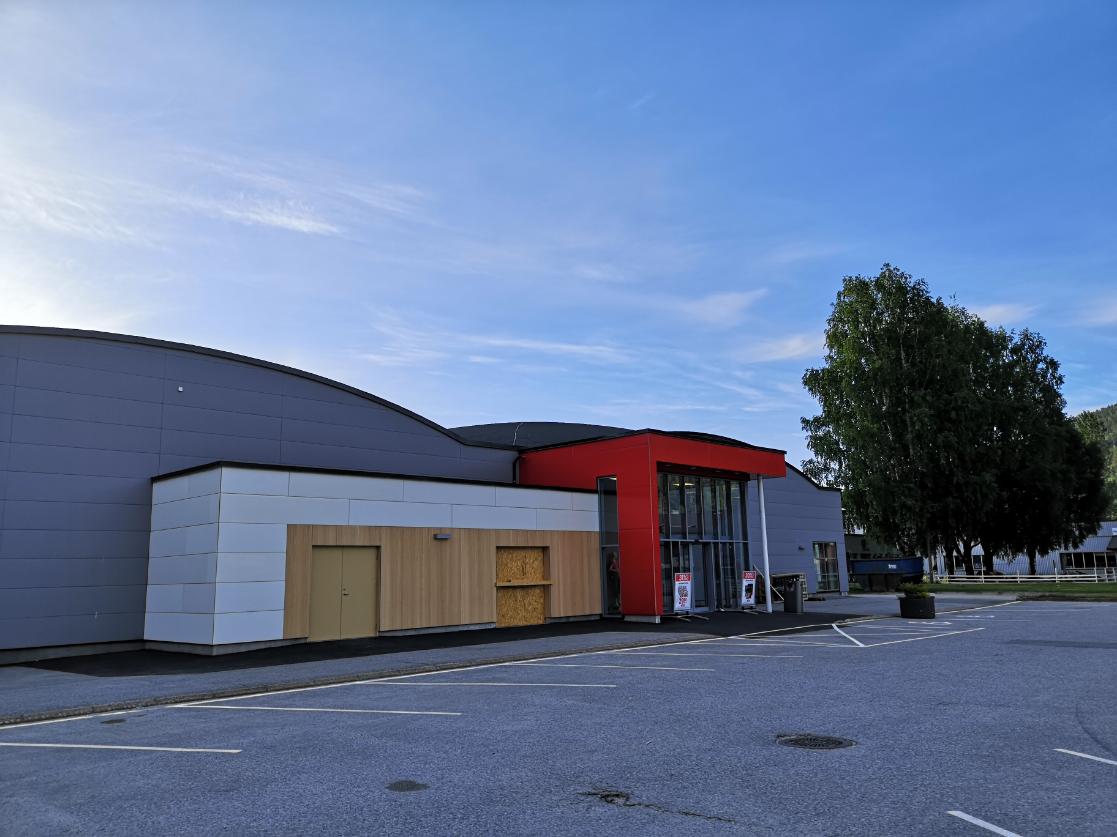 Nye fasader på Telesenteret i Seljord. 4 nye innganger med lager og sykkelparkeringer. Ny utforet vegger med Steniplater på heile fasadene