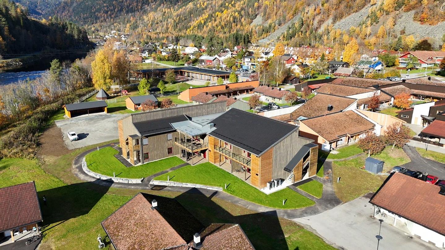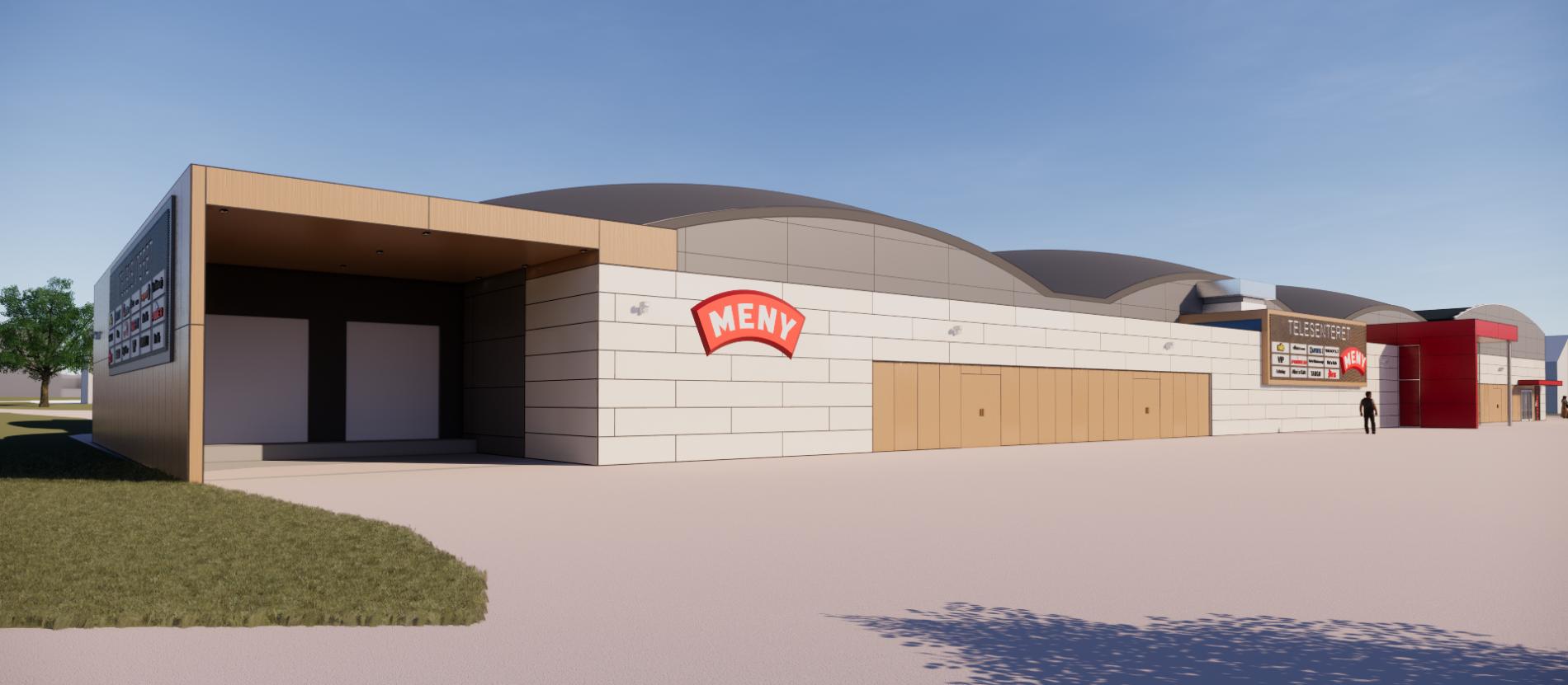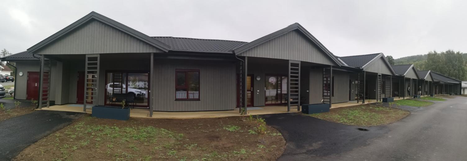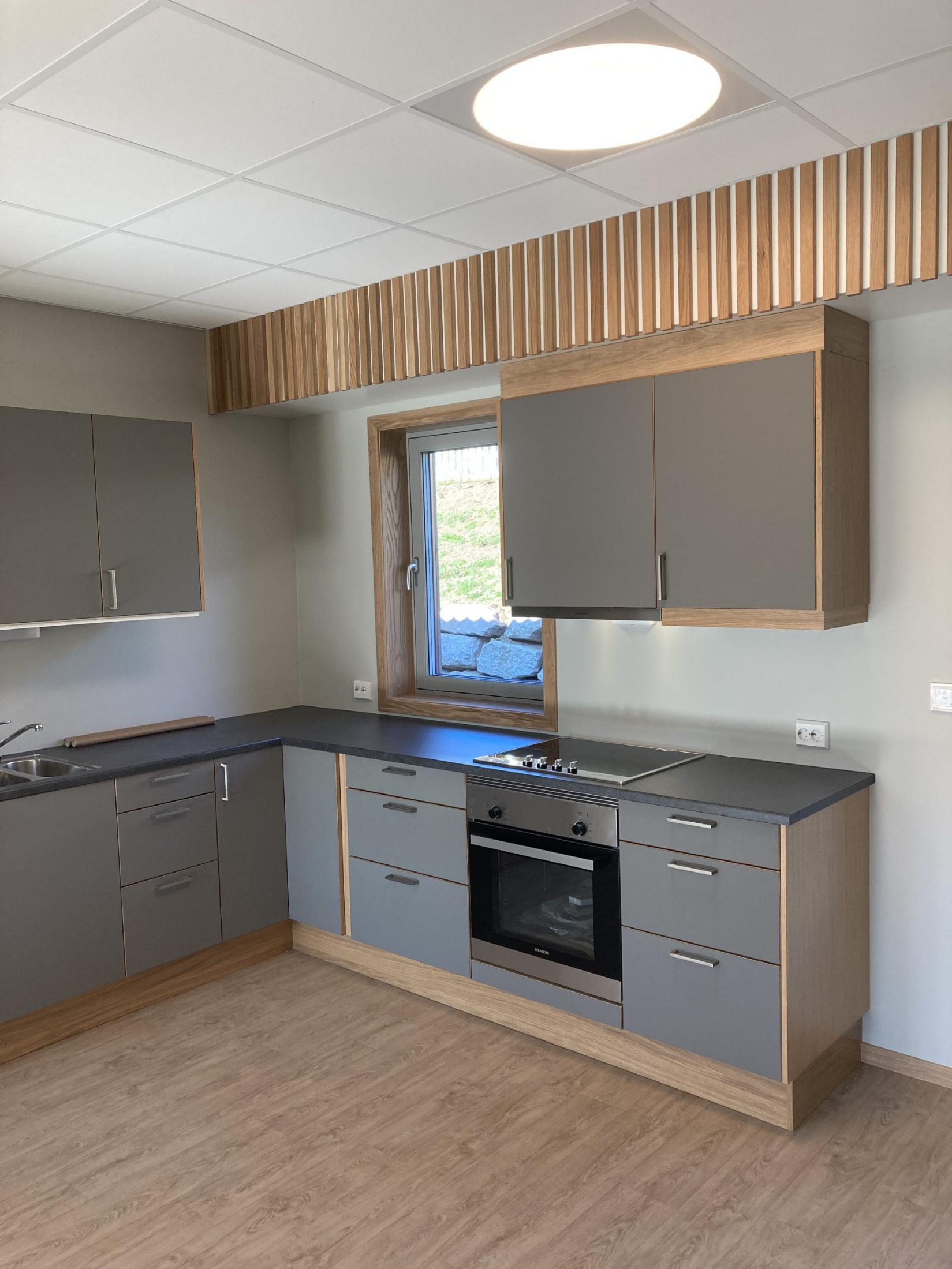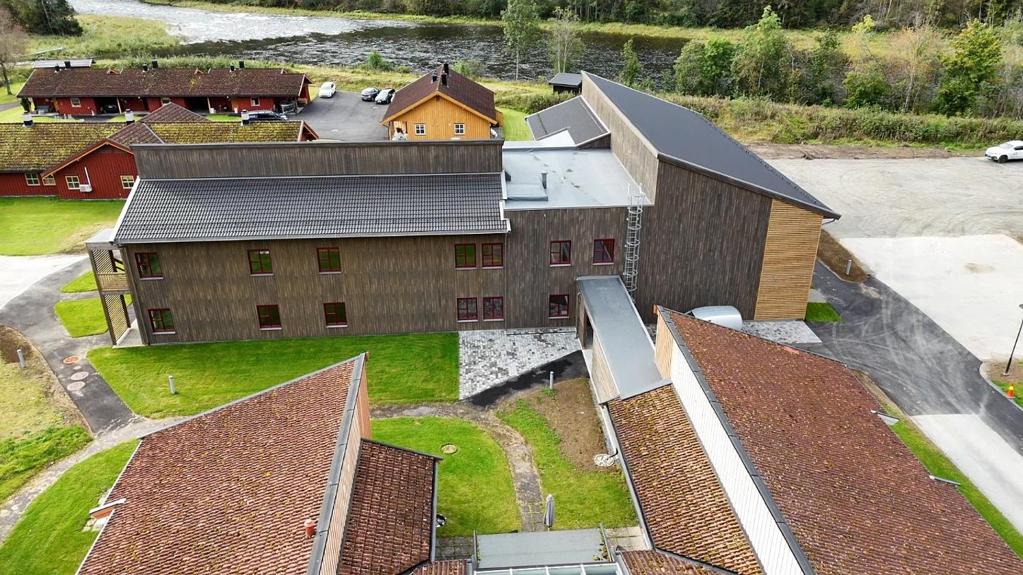 Nye fasader på Telesenteret i Seljord. 4 nye innganger med lager og sykkelparkeringer. Ny utforet vegger med Steniplater på heile fasadene