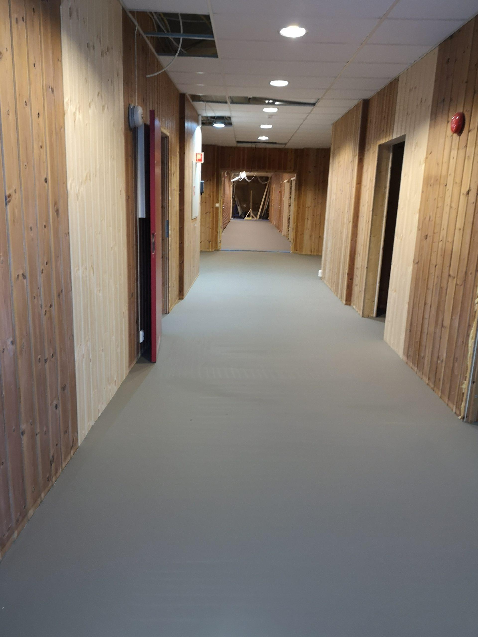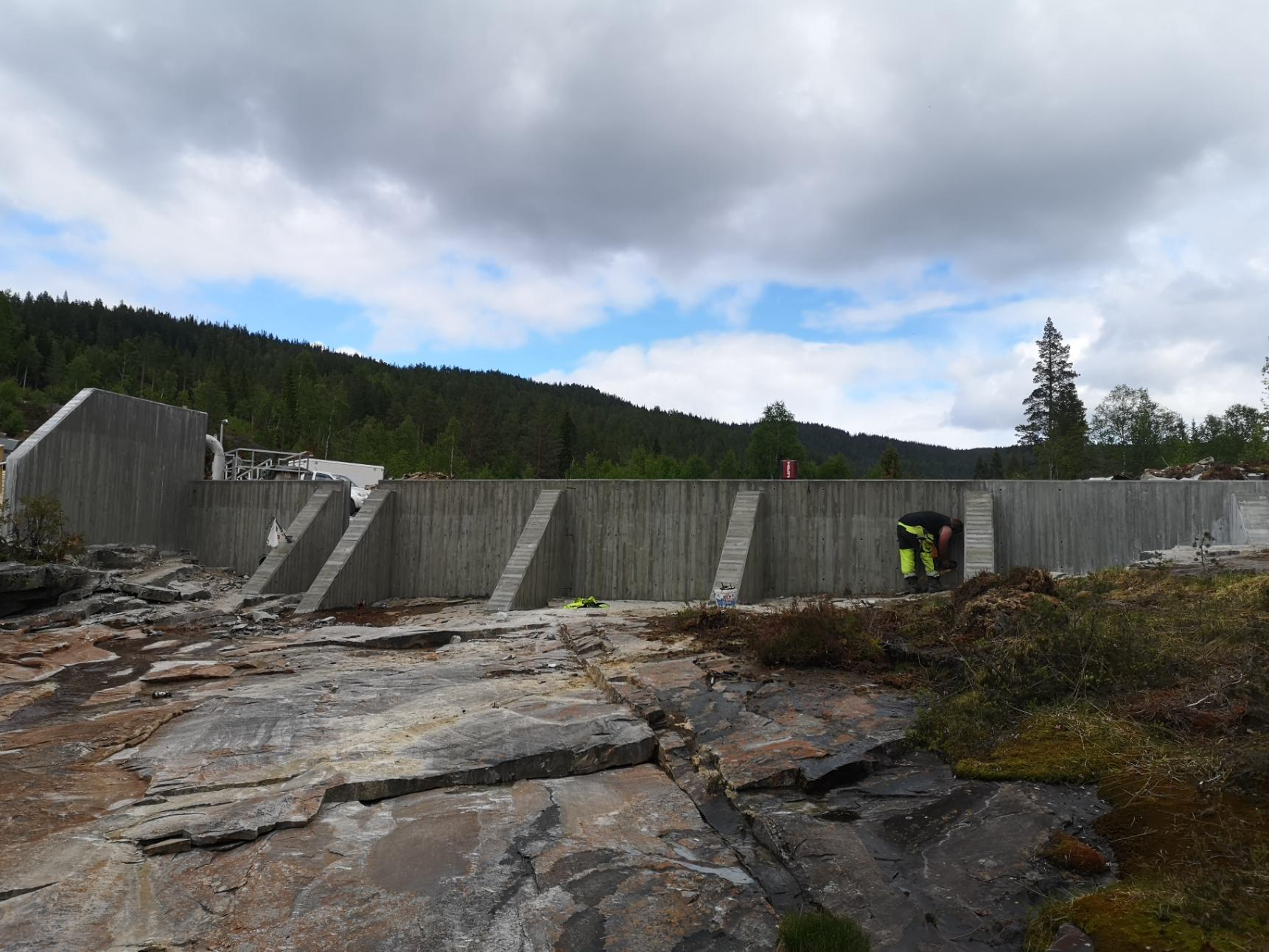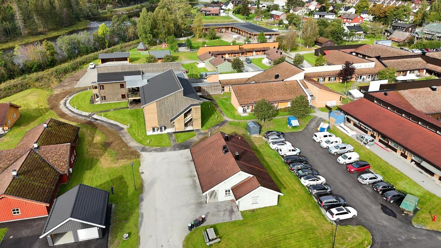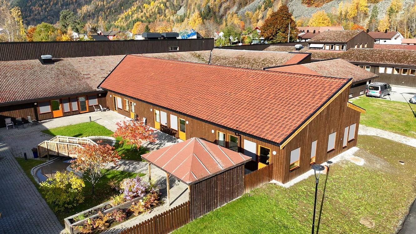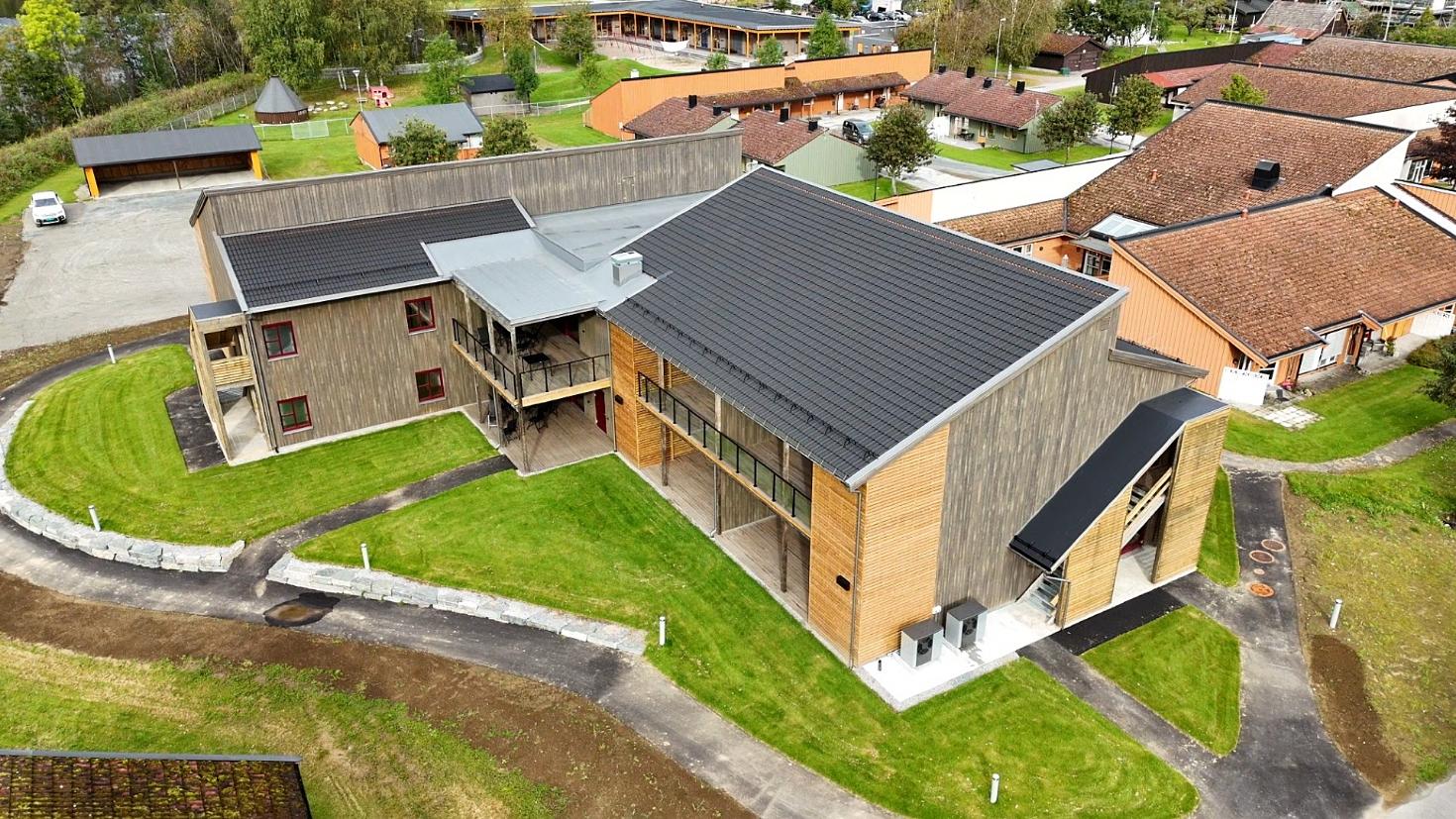 Nye fasader på Telesenteret i Seljord. 4 nye innganger med lager og sykkelparkeringer. Ny utforet vegger med Steniplater på heile fasadene