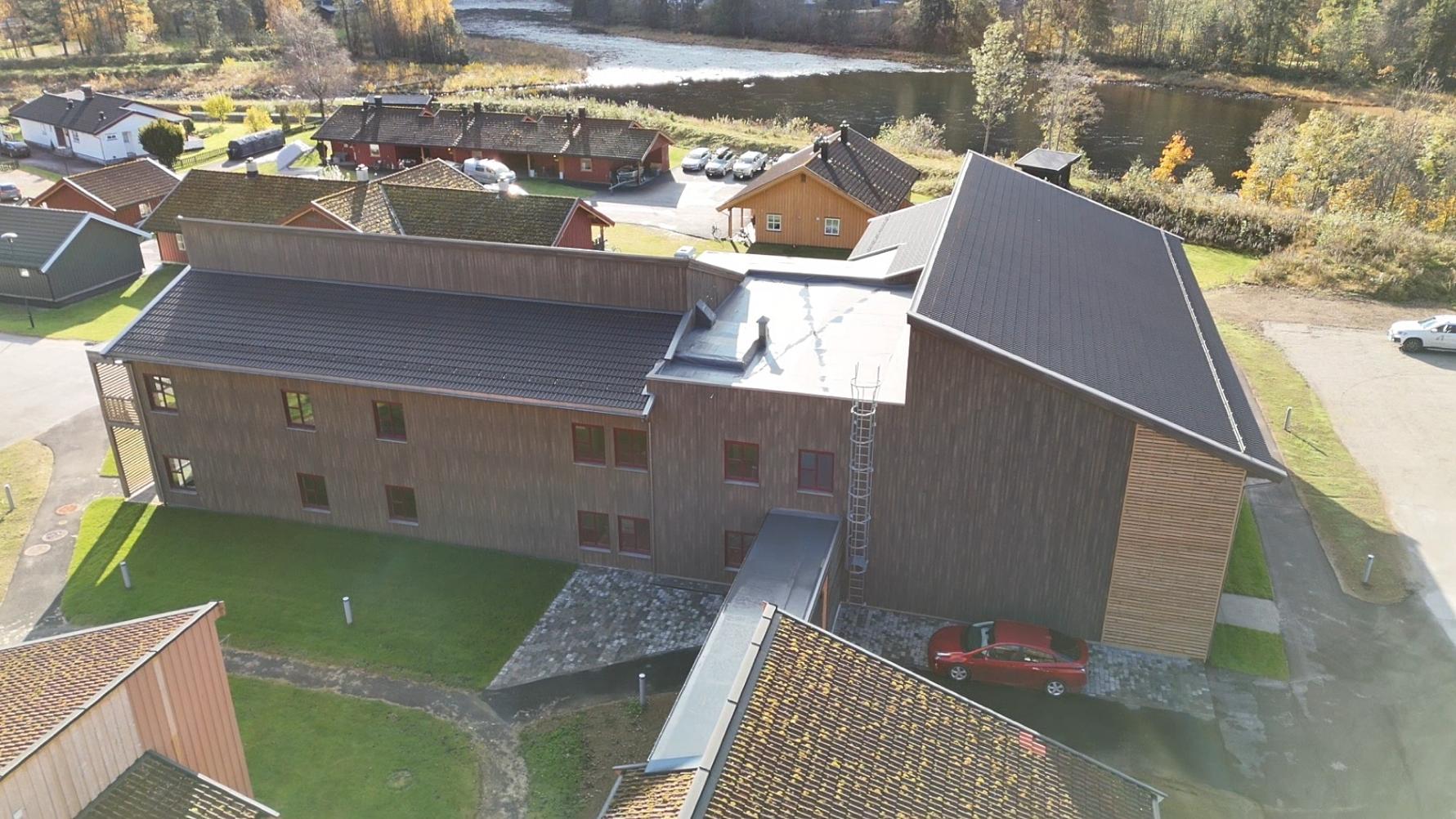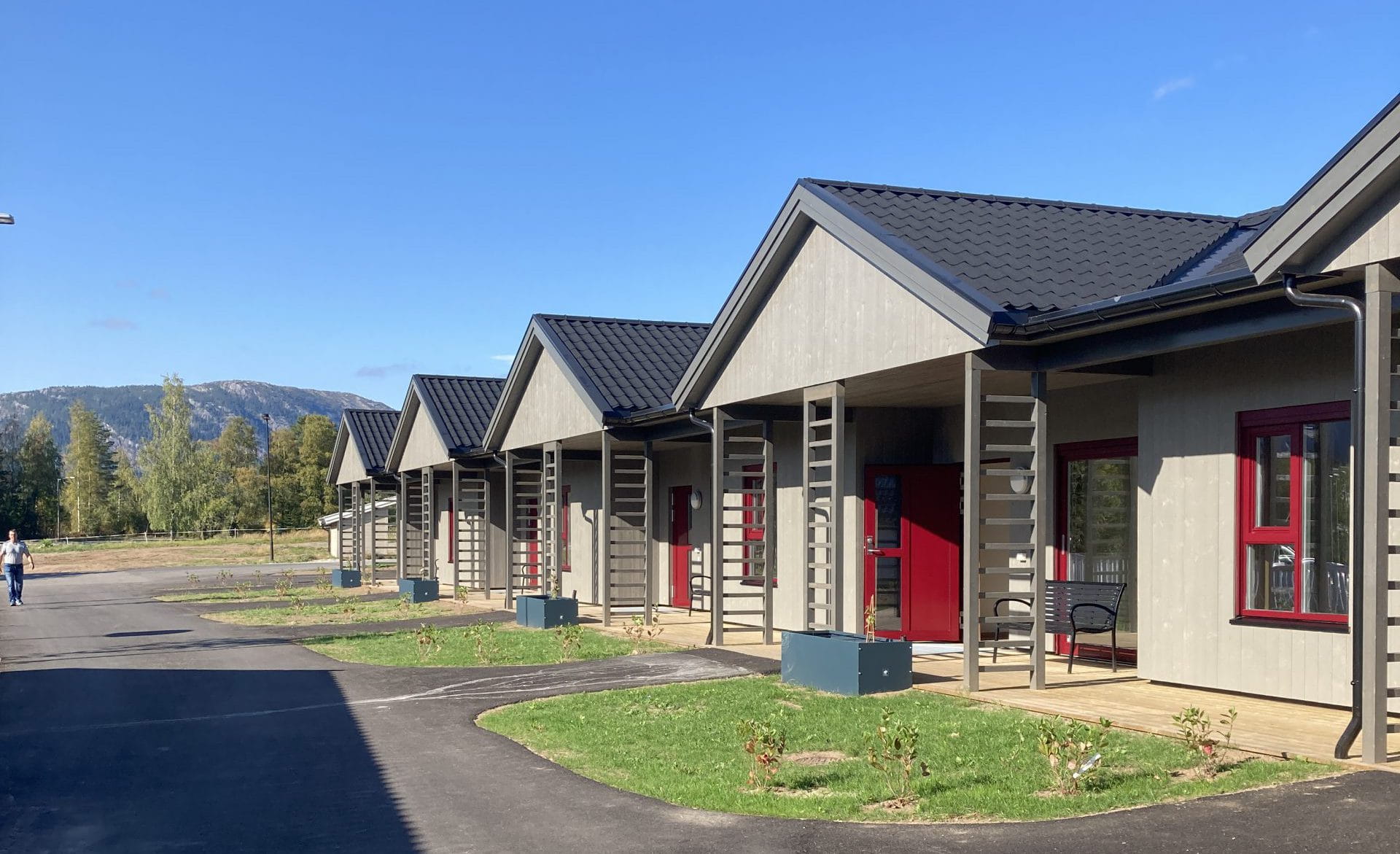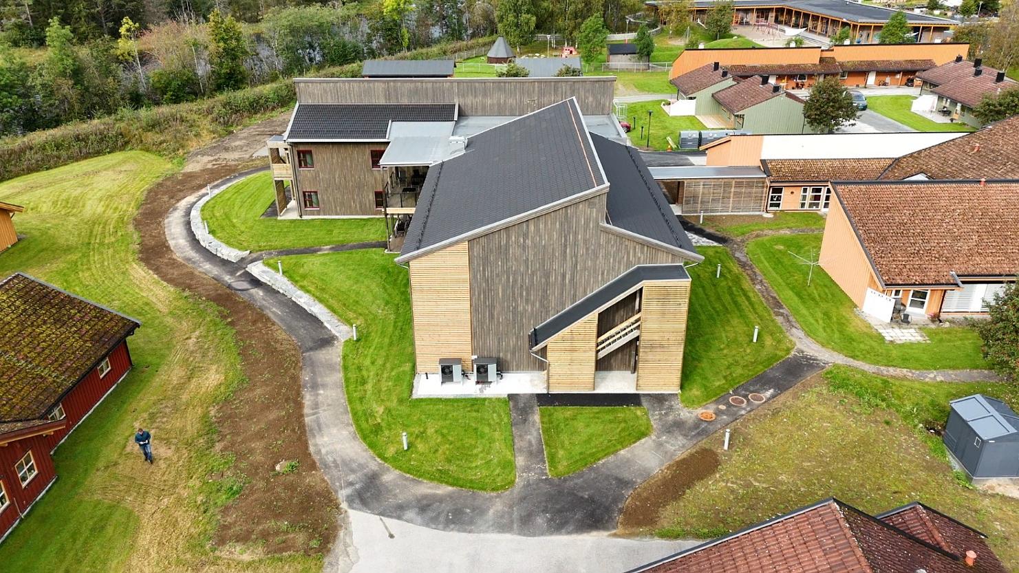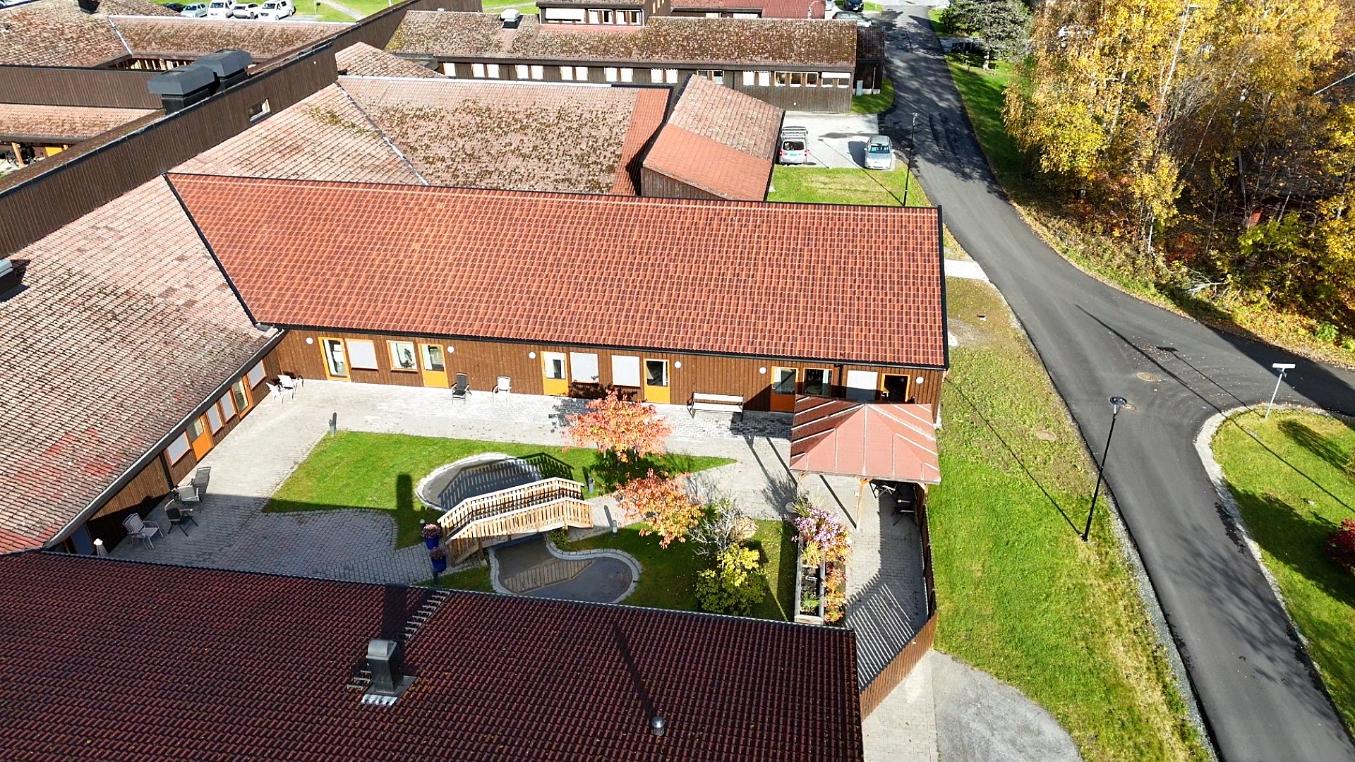 Nye fasader på Telesenteret i Seljord. 4 nye innganger med lager og sykkelparkeringer. Ny utforet vegger med Steniplater på heile fasadene