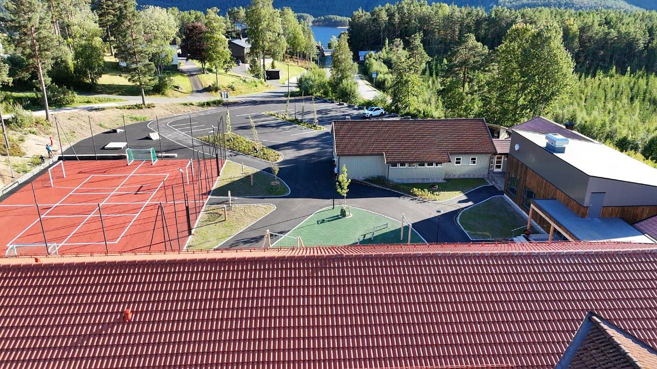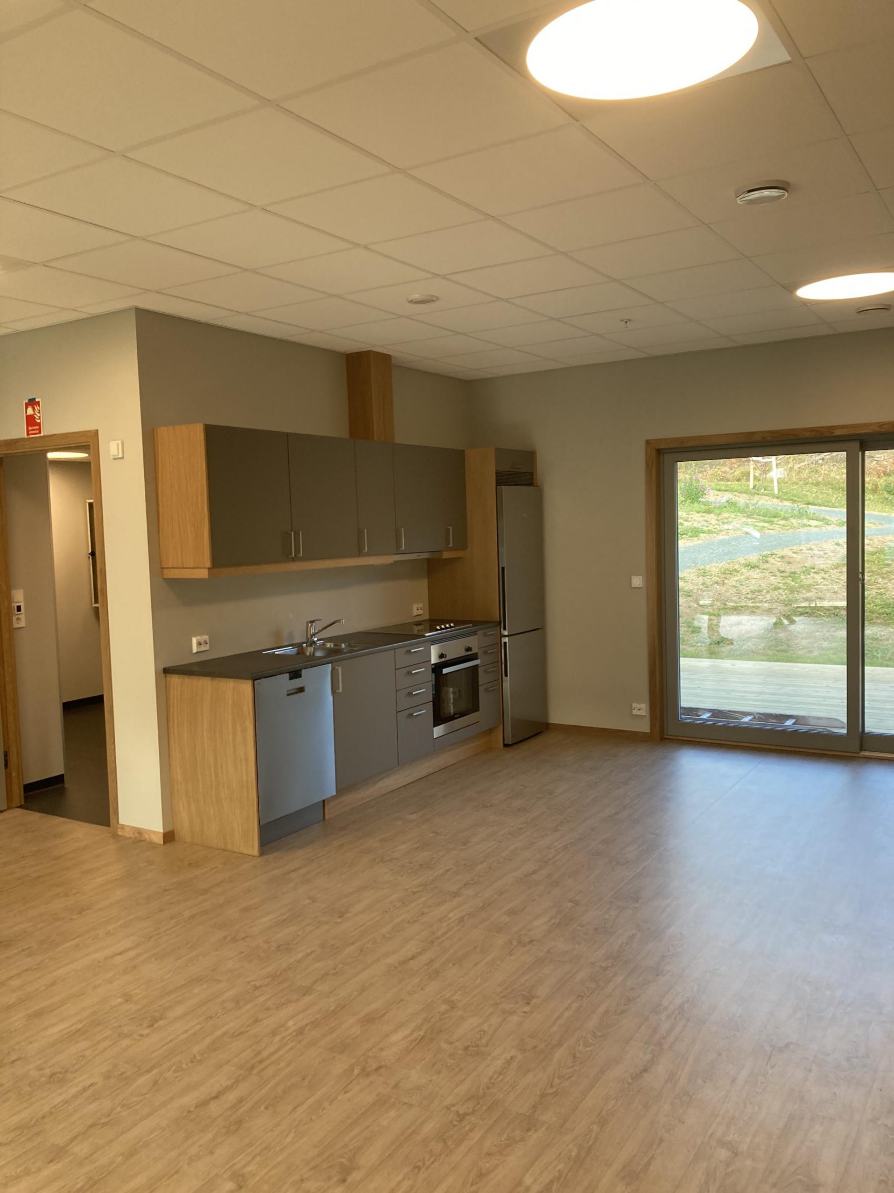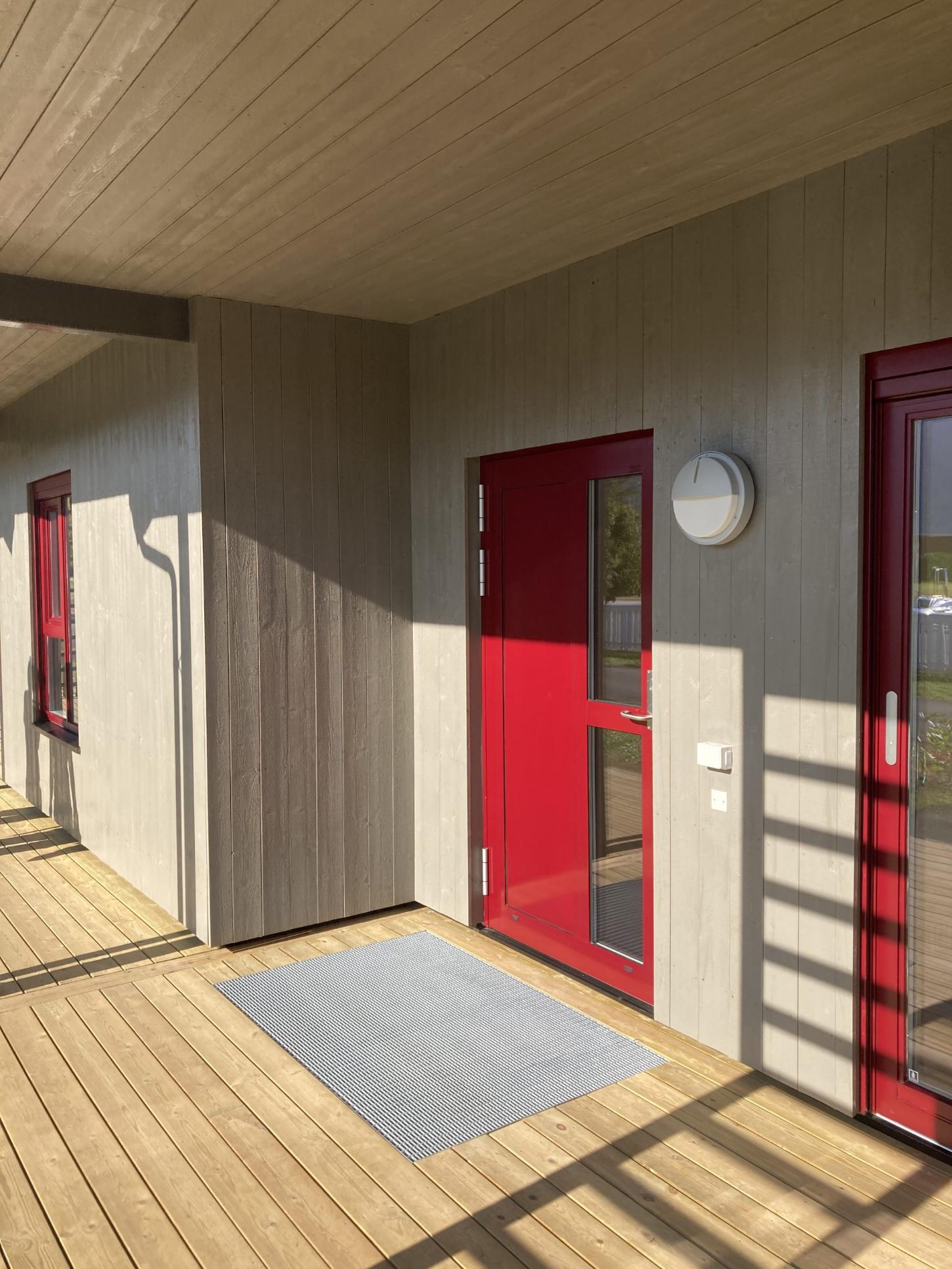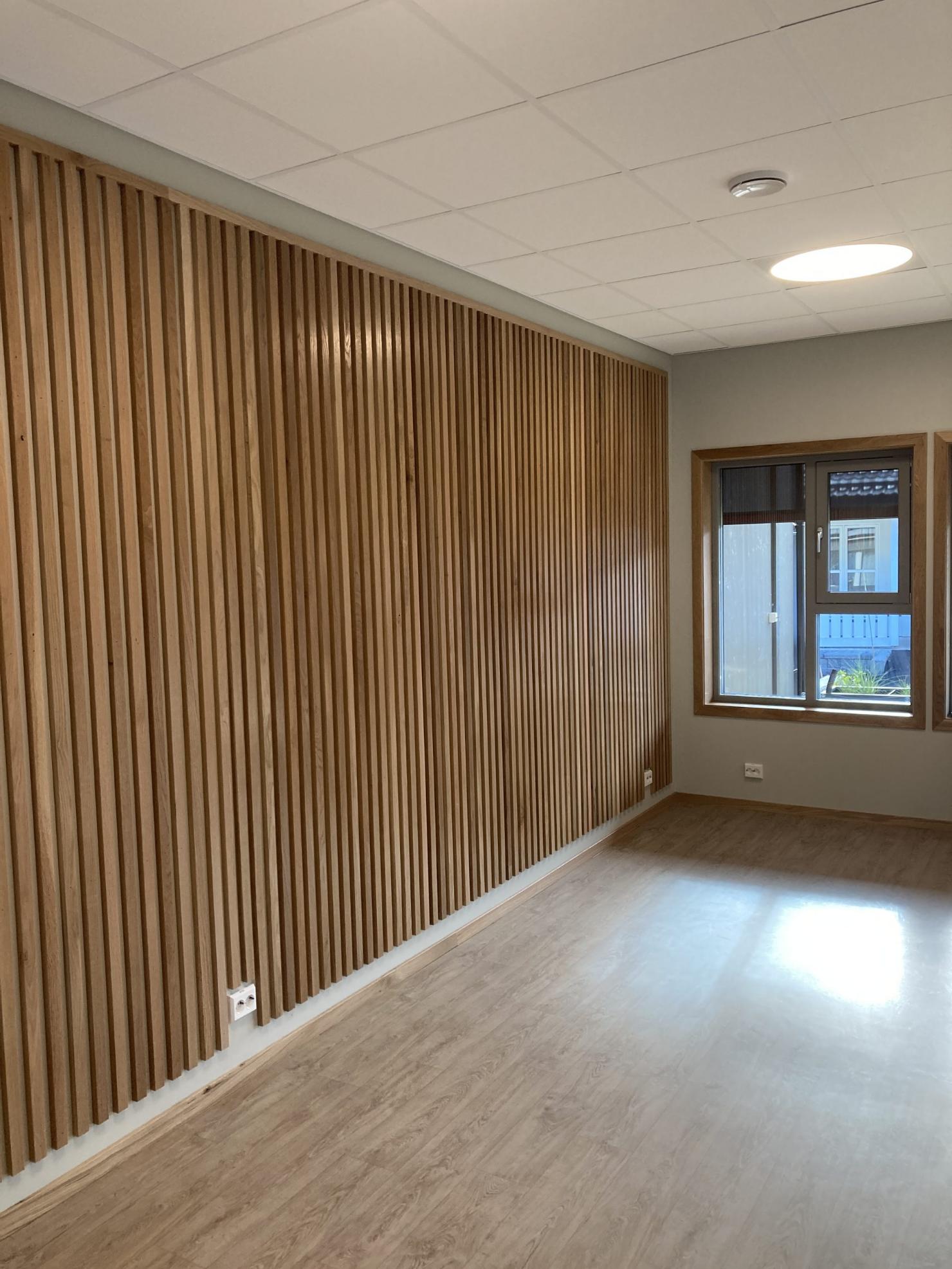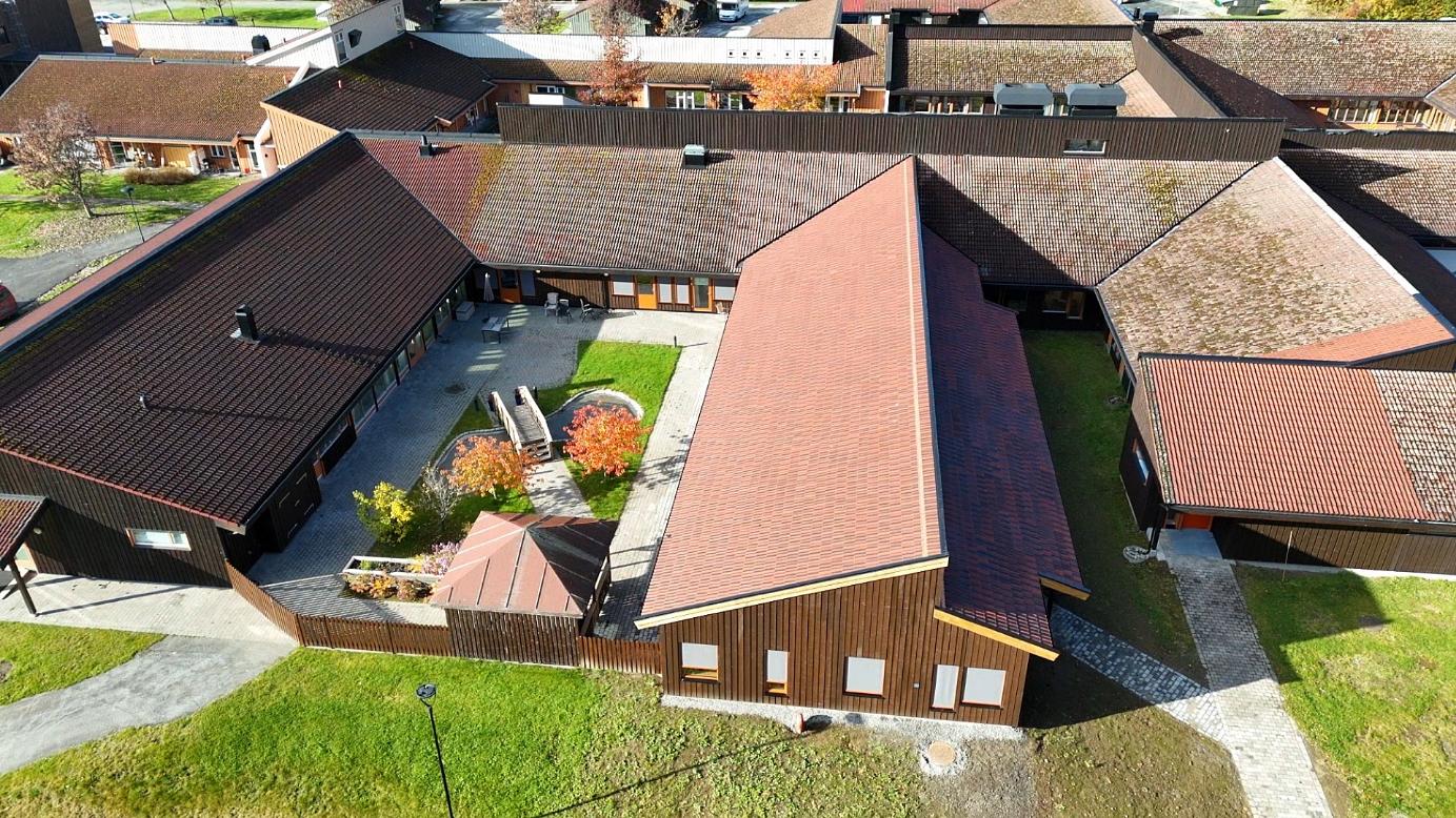 Nye fasader på Telesenteret i Seljord. 4 nye innganger med lager og sykkelparkeringer. Ny utforet vegger med Steniplater på heile fasadene